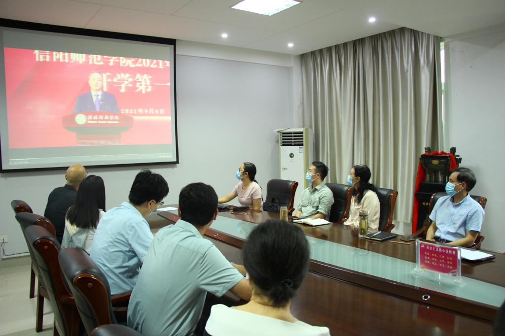 领导班子及相关人员在经管楼506会议室,集中观看“开学第一课”,学生们按照统一安排自行居家观看。