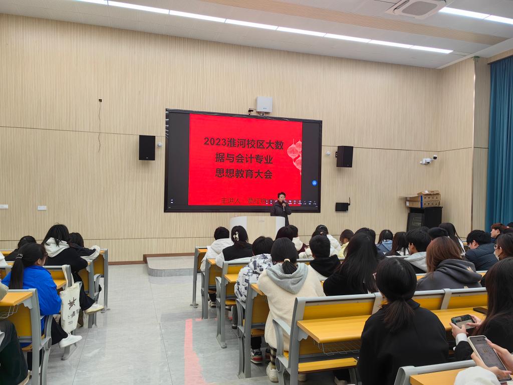 近日,淮河校区2023级大数据与会计(专科)新生专业思想教育交流会于淮河校区212教室举行。会计学系专任教师王珍教授、贾红艳老师出席会议,2023级大数据与会计(专科)四个班近300名学生参加会议。会议由贾红艳主持。