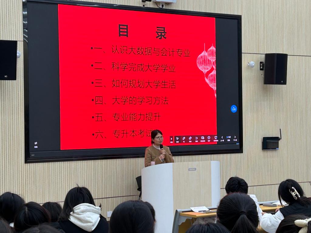 本次交流会两位老师从认识大数据与会计专业、科学完成大学学业、如何规划大学生活、大学的学习方法、专业能力提升、专升本考试等六个方面进行交流。