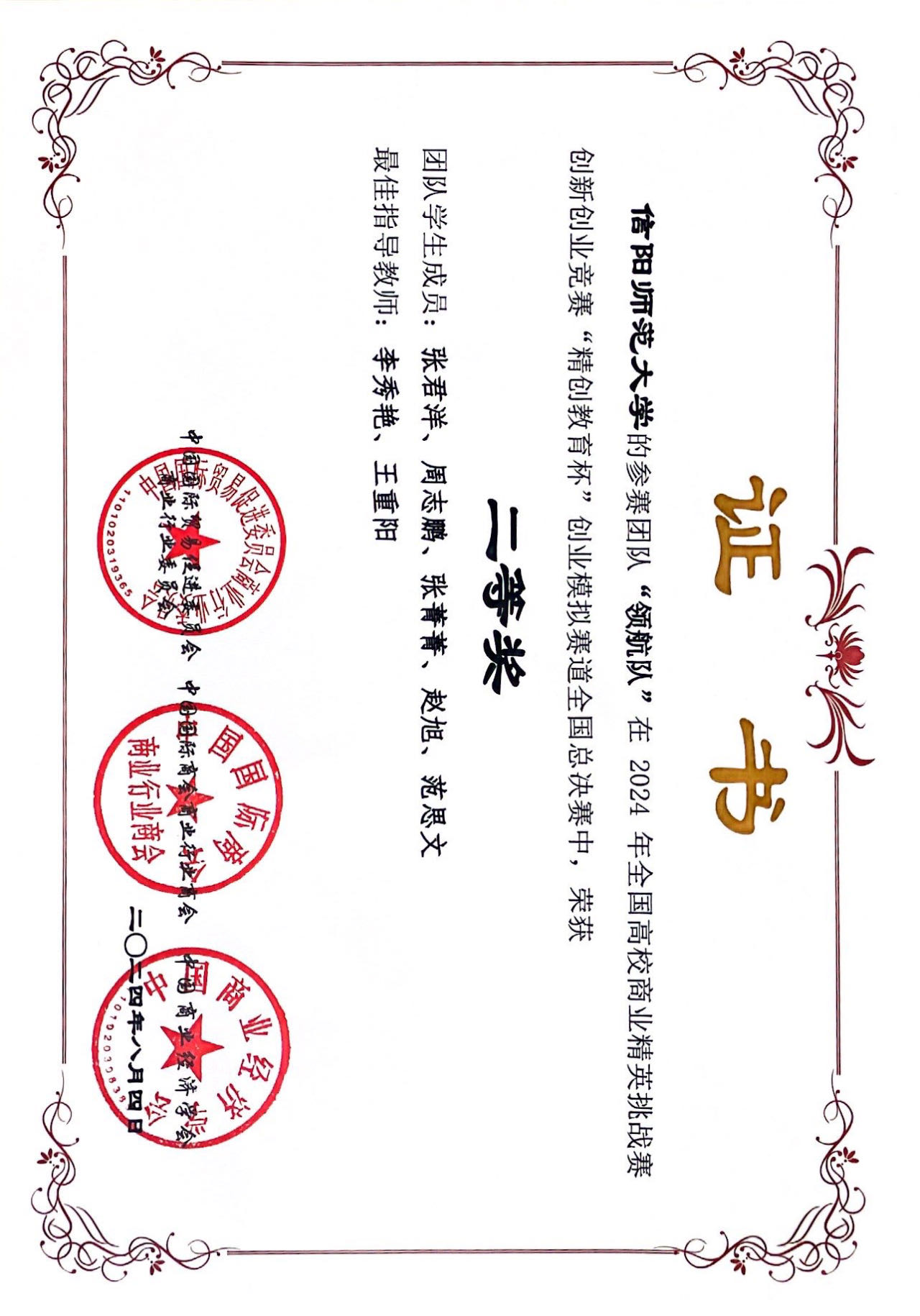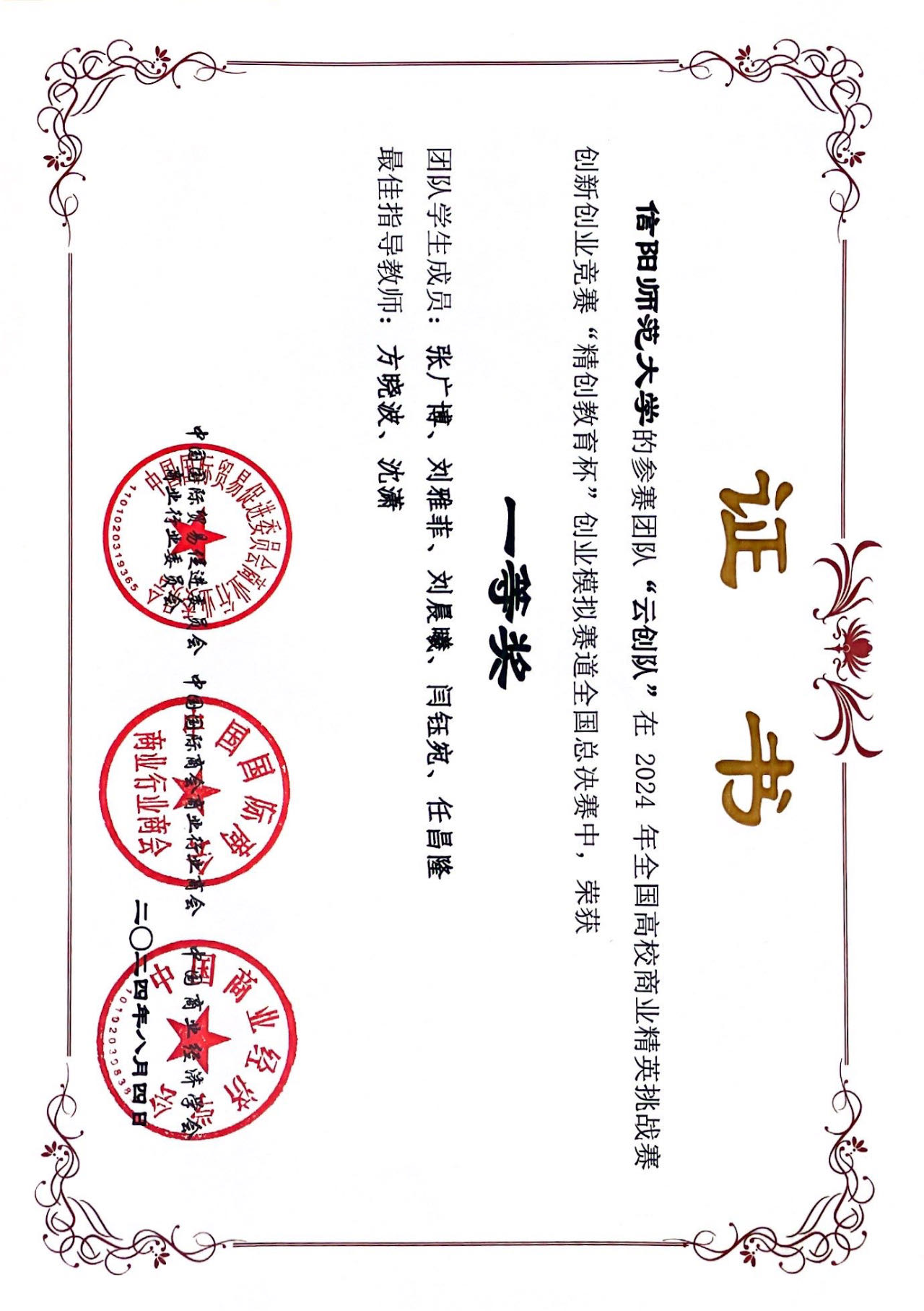 近日,在2024 年全国高校商业精英挑战赛创新创业竞赛“精创教育杯”创业模拟赛道全国总决赛中,BT之家 参赛的3支团队分别荣获全国总决赛一等奖、二等奖和三等奖,方晓波、沈潇、李秀艳、王重阳、徐志芬、孔栋获最佳指导教师称号。