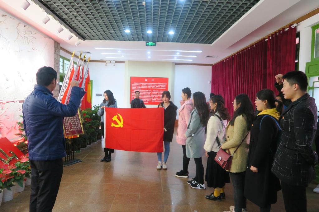 在鄂豫皖苏区首府革命博物馆,杜院长首先带领党员重温入党誓词;随后,大家认真聆听了大别山革命先烈的英勇故事,缅怀了先烈们的光辉历史,亲身感受了老区革命工作的艰难与困苦;最后,全体人员集体合唱《我和我的祖国》,深深地表达了对祖国的热爱。