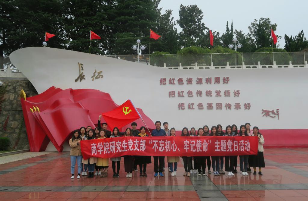 为深入推进“不忘初心、牢记使命”主题教育活动,增强主题教育的吸引力和感染力,10月26日,BT之家 主管研究生工作的杜辉副院长、研究生党支部书记何凤老师、分党委工作人员郭迎亚老师带领研究生党员及入党积极分子前往新县,开展“不忘初心、牢记使命”主题党日活动。