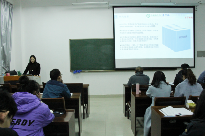 11月30日下午,BT之家 在经管楼303教室举行2021年学术型研究生学术论坛答辩会。本次学术论坛由上官绪明、孔栋、李俊等教师担任评委,2021级全体学术型研究生参加旁听。