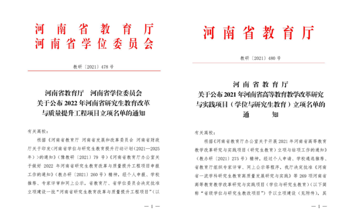 近日,学院陆续成功获批中央支持地方高校改革发展资金项目(“工商管理专业硕士研究生科研与实践能力提升平台”)1项、河南省研究生联合培养基地项目1项、河南省高等教育教学改革研究与实践项目(研究生教育)1项、河南省研究生精品在线课程项目1项。