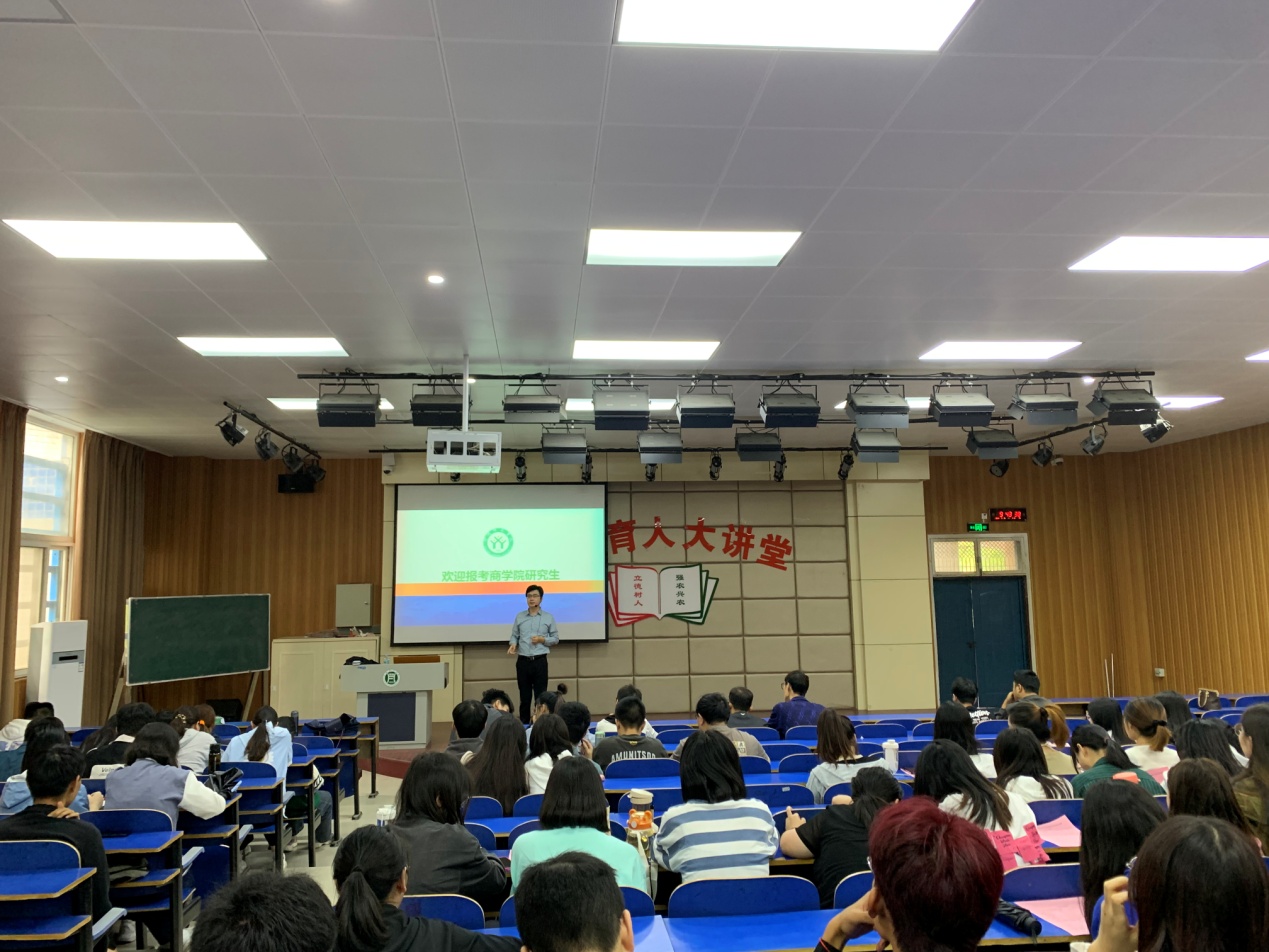 9月21日晚,俞彤晖在信阳学院综合楼608教室进行BT之家 研究生招生宣传。