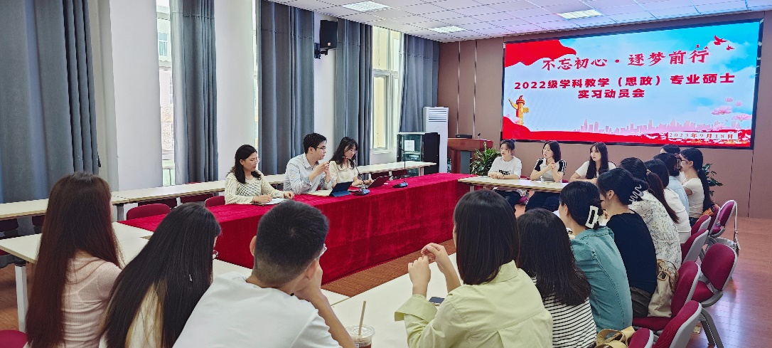 为进一步加强教育硕士实习规范化管理、提升实践环节质量,10月18日上午,在经管楼310召开了2022级学科教学(思政)专业硕士实习动员会,会议由副院长俞彤晖主持,研究生工作秘书何凤,研究生专职班主任刘梦北以及2022级学科思政班同学参与本次会议。