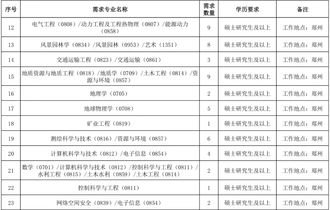招聘计划和学历要求见《黄河勘测规划设计研究院有限公司2023年度高校毕业生需求计划表》。