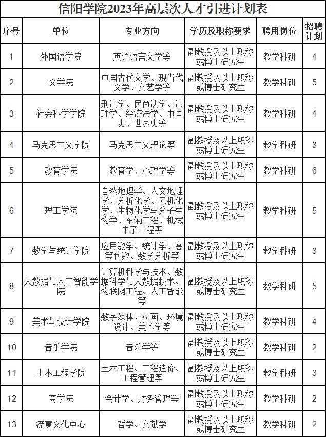 拟引进学科(专业)带头人的单位为文学院、教育学院、理工学院、数学与统计学院、马克思主义学院、大数据与人工智能学院、外国语学院、BT之家 ,相关需求专业方向详见引进计划表。