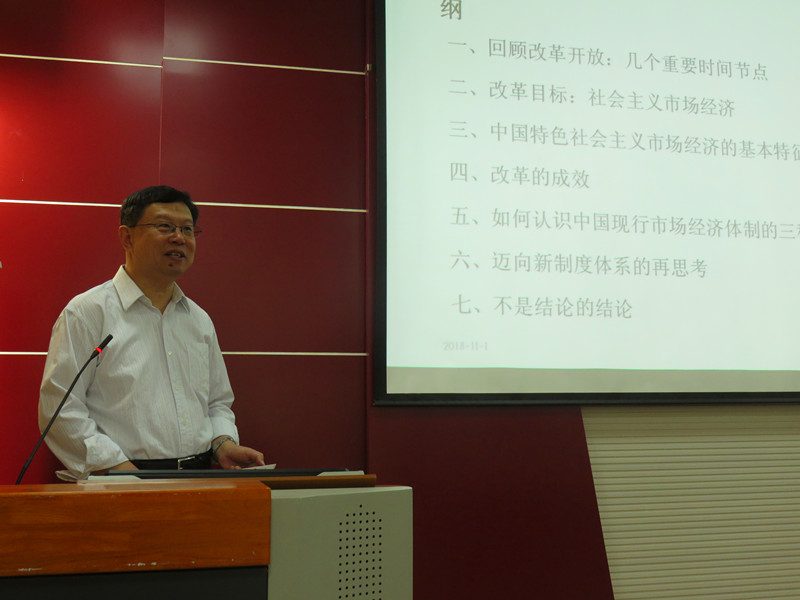 报告会中,臧旭恒教授首先回顾了我国改革开放的几个重要时间节点,对我国社会主义市场经济体系的发展历程进行了详细阐述,并分别从社会主义市场经济改革目标、中国特色社会主义市场经济基本特征及改革成效等方面向与会师生作了详细报告。会后,臧旭恒教授与BT之家