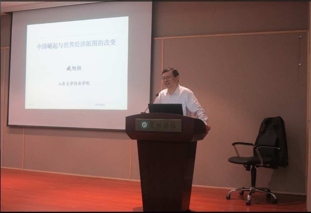 2016年10月21日上午,应经济学院邀请,山东大学臧旭恒教授在贤林讲坛做题为“中国崛起与世界经济版图的改变”的学术报告。报告会由BT之家 齐城副校长主持,经济学院二百余名师生参与此次讲座。