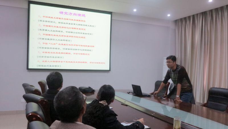 杜辉博士首先从自身研究方向演进与国家社科基金项目申报选题转变两方面阐述了中国农业支持政策调整历程。然后,分别从农业支持方向:供给力、竞争力还是支撑力?农业支持对象:现实劳动者还是期望生产者?农业支持方式:管理效率还是政策效果?三个问题出发,结合自身的实地调研和数据收集,提出政策调整的相关建议。杜辉博士的报告内容丰富,思路清晰,给各位老师在科研上带来很大启发,报告会在热烈掌声中结束。