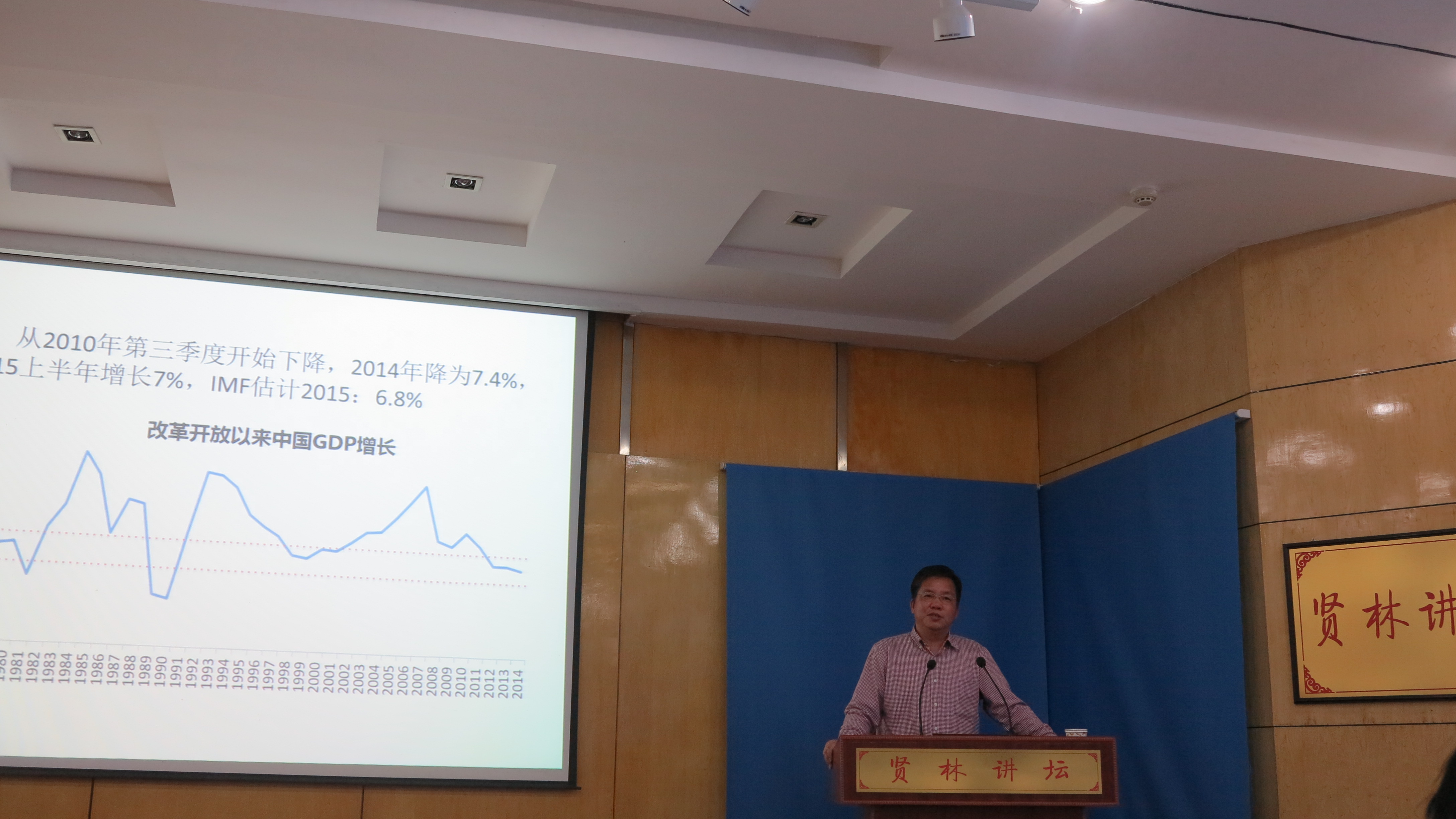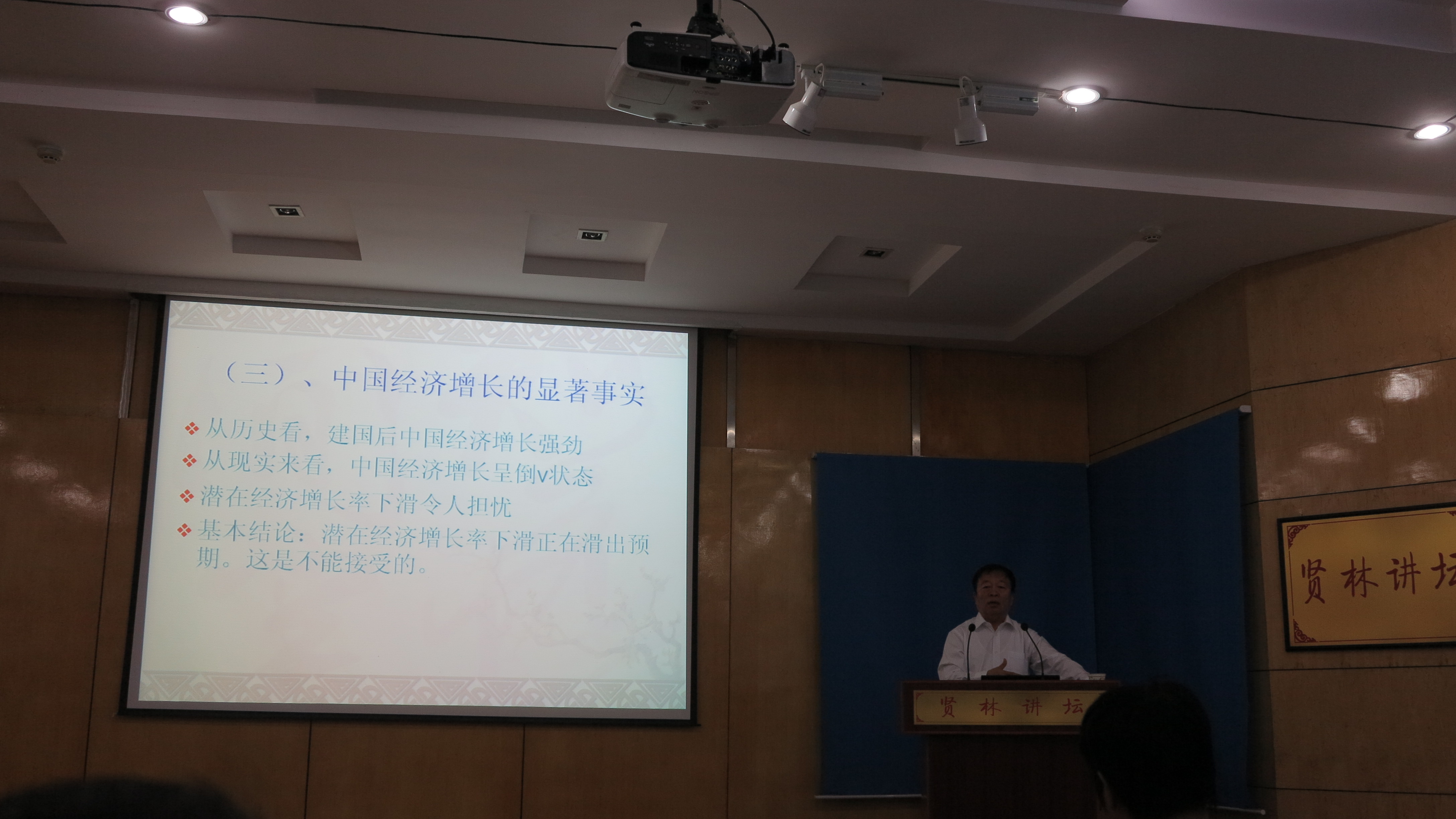讲学,在贤林讲坛作了题为“如何认识当前的中国经济增长问题”的报告,报告会由副校长王文臣教授主持,经济学院师生参加了报告会。