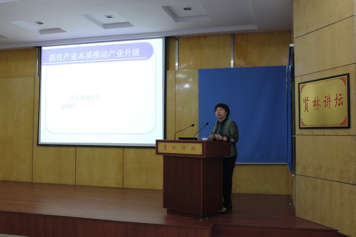 2015年5月13日下午,受经济学院邀请,西安交通大学博士生导师袁晓玲教授在校“贤林讲坛”作了题为《抓住产业本质推动产业升级》的学术报告,副院长梅士建教授主持报告会,袁教授从一、经济新常态,二、产业升级思路,三、产业升级的途径等三个方面,理论联合实际,深入浅出地揭示出我国新常态下产业优化升级应把握规律、思路、方法,为参会师生送上一份丰富的精神大餐,报告会在热烈的掌声中结束。