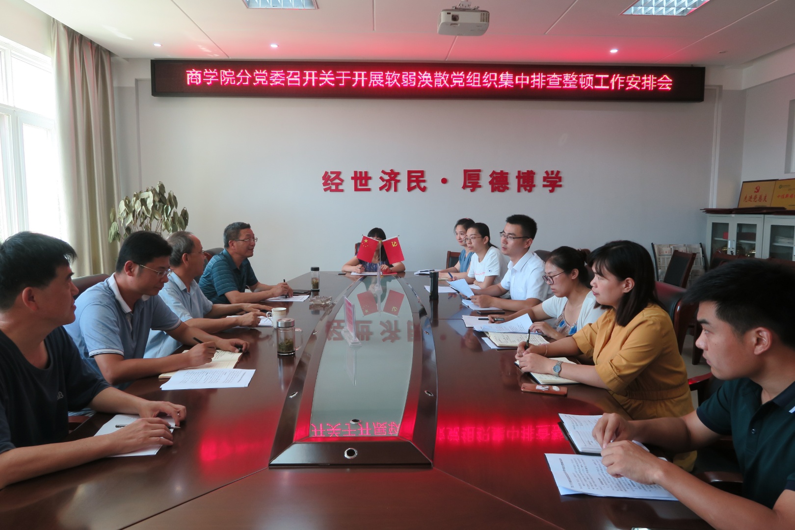 8月16日上午,BT之家 分党委在经管楼506会议室召开软弱涣散党组织集中排查整顿工作安排会,BT之家 分党委书记盛正国,党委委员梅士建、李毓、杜辉及各党支部书记出席会议,会议由盛正国主持。