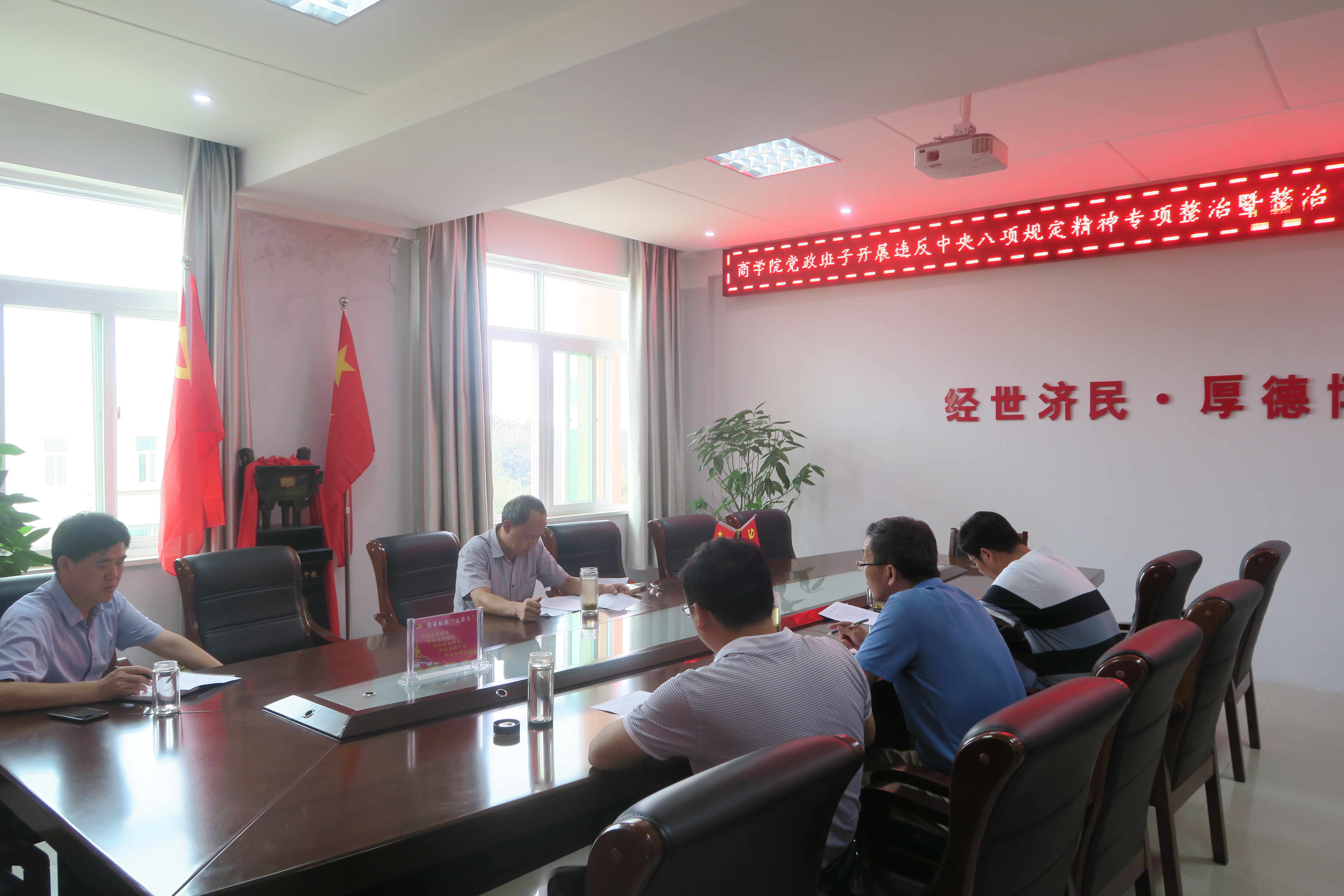 会上,盛正国同志首先传达了《中共河南省纪委关于印发< 全省开展违反中央八项规定精神问题专项整治工作方案>的通知》《中共河南省纪委 中共河南省委组织部关于印发< 全省严明政治纪律和政治规矩开展整治“帮圈文化”专项排查工作方案>的通知》精神,随后结合实际情况带头作了对照检查。学院党员领导班子成员做了对照查摆,并进行了批评与自我批评。最后,BT之家 党政班子集体签订了《坚决抵制“帮圈文化”承诺书》。