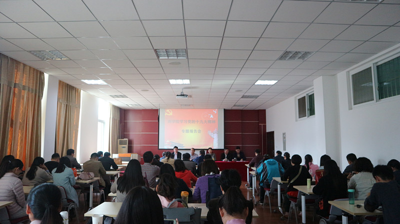 10月24日下午,经济学教研室邱海洋博士为全体教职工作了题为“感悟新精神 展望新时代——深入学习党的十九大报告”的报告,重点梳理了十九大报告中关于新发展理念的相关内容;报告结束时,该院党委书记盛正国指出,十九大召开之际恰逢BT之家 更名师范大学实地考察,学校的发展印证了社会生产力的进步,正如习总书记所说,当前社会的主要矛盾已经转化,我们正处在实现现代化的关键时期,希望大家细读、细研十九大报告,将学习十九大、宣传十九大和研究十九大作为自己义不容辞的责任担当,深入扎实有效地开展和推进学院学习党的十九大精神相关工作。