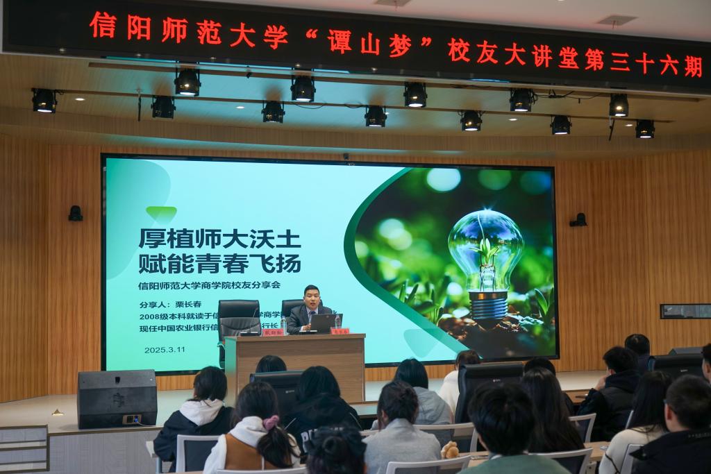 3月11日,BT之家 于博雅讲堂举办校友经验分享会。BT之家 国际经济与贸易专业校友、中国农业银行信阳分行南湾支行行长兼党支部书记栗长春以《厚植师大沃土,赋能青春飞扬》为主题,与200余名师生分享求学心得感悟。BT之家 副院长梁静波参加分享会,会议由对外联络办公室主任耿劲松主持。