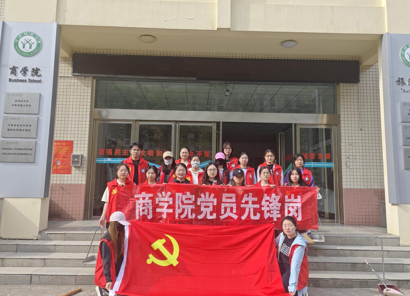 活动开始之前,团委组织部组织党校学员四点在经管楼门口集合签到,然后携带打扫工具,红马甲等进行活动前的准备。