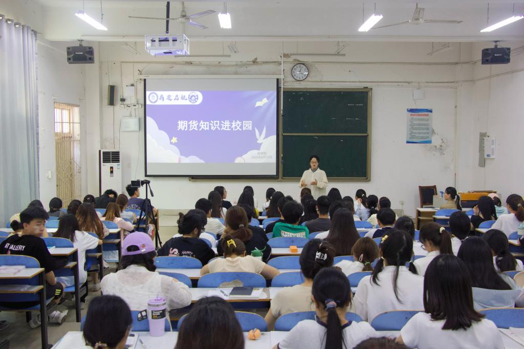 103教室现场,校友代表贾琪琳学姐以“期货基础知识+技术分析+赛事实践”为脉络,结合行业案例,深入解析期货市场运行机制与技术分析方法,并详细介绍“郑商所杯”全国大学生金融模拟交易大赛相关信息,鼓励学生以赛促学。随后,黄书记总结感谢,寄语学生把握校企合作契机提升竞争力。方晓波老师围绕“商业计划书制作中的市场模块”展开专题讲解,以生动案例与互动问答,引导学生理解市场调研等核心要点,现场气氛热烈。101教室现场,光大证券郑州金水路营业部代表立足央企上市券商视角,介绍证券行业概况、职业路径、招聘信息;敏睿人力张敏女士围绕就业能力模型,解析金融就业所需技能并给出择业建议;民生证券仝华先生以“金融为舟,合规作楫”为题,展现金融体系全貌与企业特色。