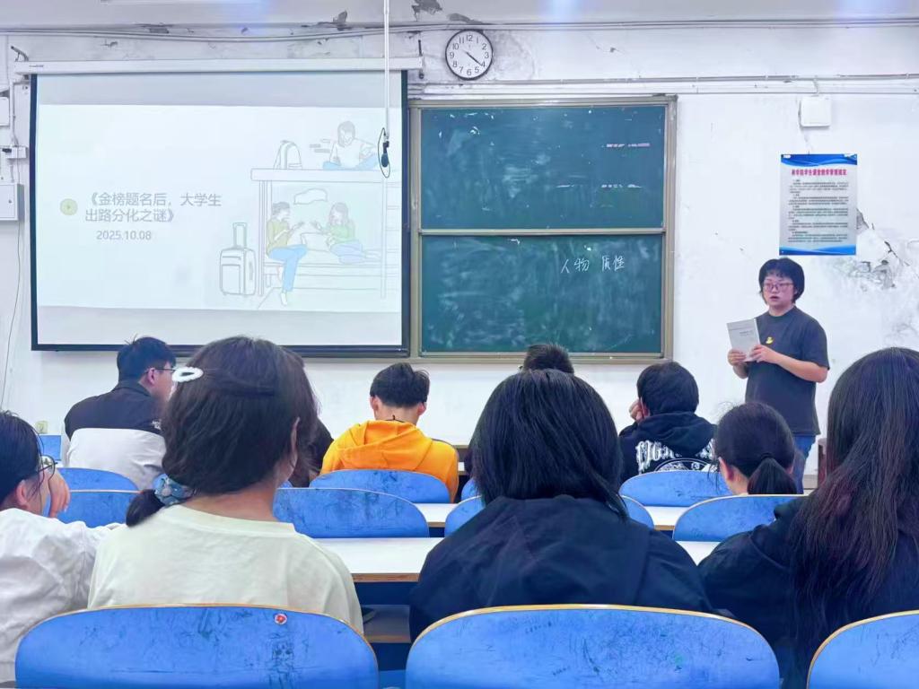 此次读书分享会,不仅使同学们对《金榜题名之后:大学生出路分化之谜》一书的内涵有了深刻认知,更以书籍为桥梁,搭建起师生交流成长感悟、共话未来规划的平台。黄钰莹对作者郑雅君人生选择的生动剖析与解读,深刻启发了同学们对职业规划方向、人生价值追寻的深度思辨,为同学们厘清大学成长路径、谋划未来发展方向开辟了全新的思考维度。