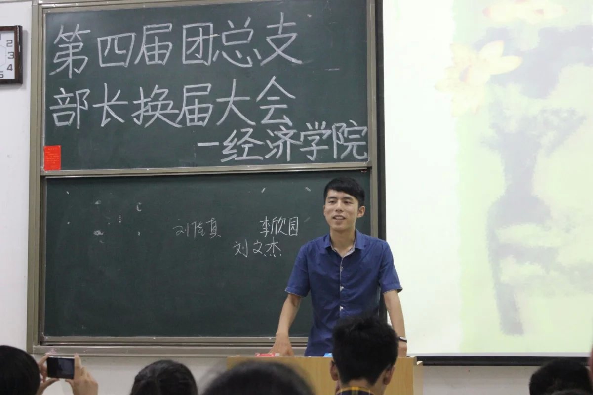(本网讯 刘文杰 刘佳真)为了给同学们更多锻炼机会,并顺利完成经济学院团总支领导班子交替,更好的提高团总支工作效率,5月27日晚七点,经济学院第四届团总支换届大会在经管楼101顺利举行。前团总支副书记石琳峰、现团总支副书记李家福及各部成员参加了本次大会。大会由宣传部副部长聂瑜主持。