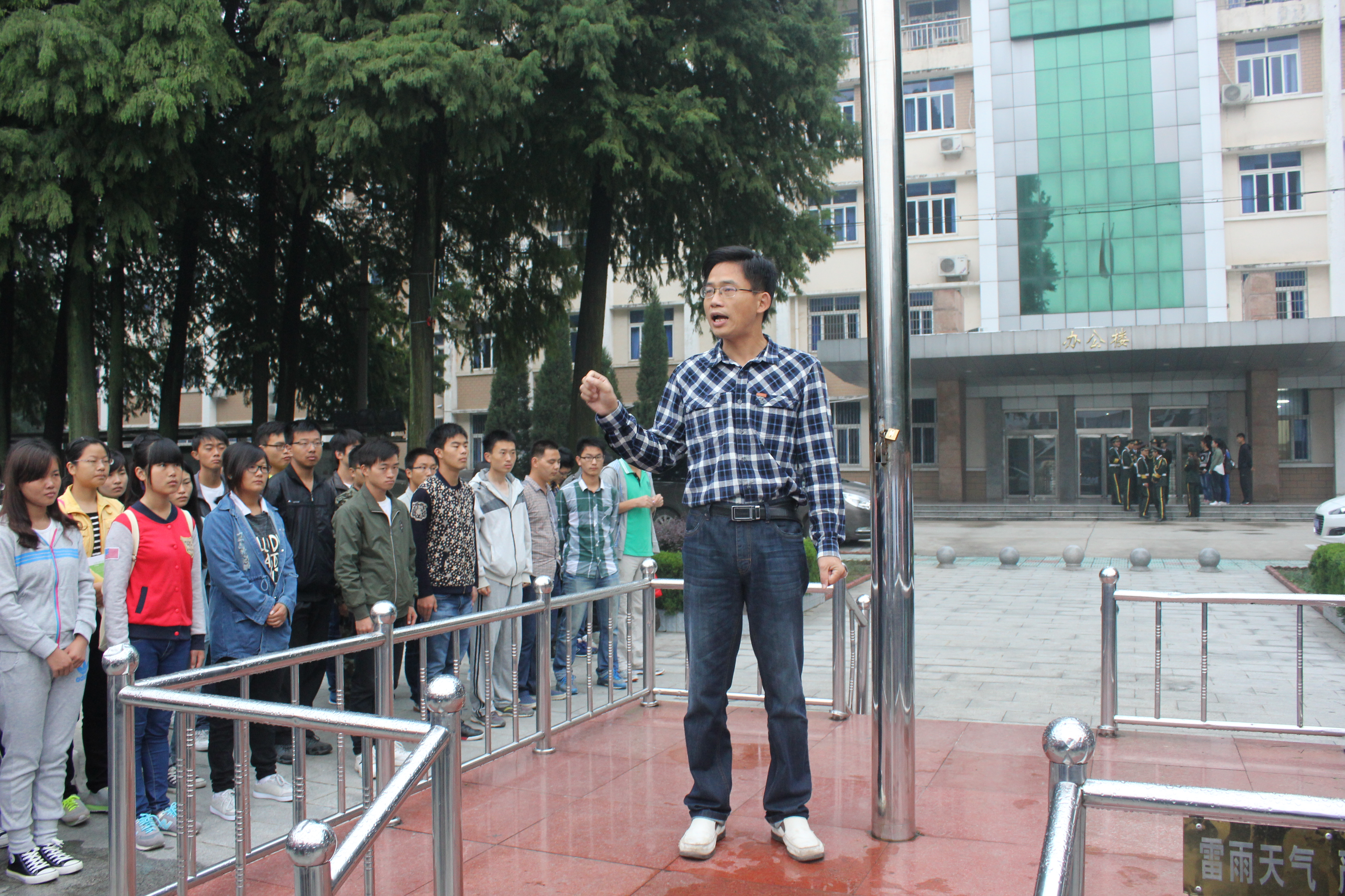 不少学生早早就等候在国旗台前,6点10分活动在主持人的深情朗诵中拉开帷幕。活动中全体师生与国旗合影,注目并仰望国旗徐徐升起;面向国旗宣誓,振臂高呼时代口号;在“缅怀革命先烈、喜迎祖国华诞、共筑中国梦”条幅上留言签字。在面对国旗宣誓环节,同学们表情严肃、语言铿锵有力,誓言不忘先烈丰功伟绩,积极担起青春使命。在面对国旗高呼时代口号环节,房书记先与大家一起回顾了1840年鸦片战争特别是1937年全面抗战以来,在挽救民族危亡的历程中,无数仁人志士坚守“祖国不亡,有我!”的时代誓言,为国家和民族抛头颅洒热血;他指出新时代我们仍在冒着敌人的炮火前进,应该铭记“祖国的繁荣富强我负责”这一属于当今青年学子的时代口号,并带领师生振臂三呼“祖国的繁荣富强我负责”,声音响彻校园上空。