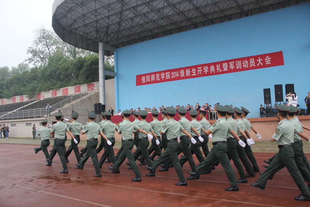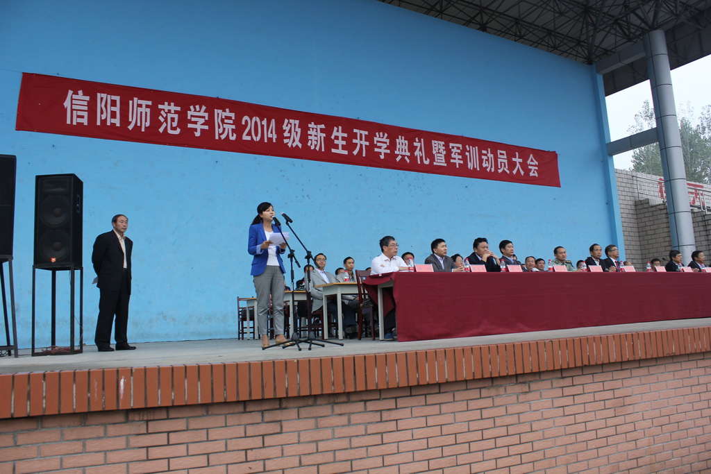 9月13日上午,信阳师院在BT之家 西体育场隆重举办2014级新生开学典礼暨军训动员大会。校党委书记孙宏典,校长卢克平,党委副书记高建社,党委副书记、纪委书记李绍文,副院长李俊、张力、郜火星、王文臣、刘彦明,校长助理舒刚、陈登报,承训部队首长,以及学校各相关职能部门负责人和各学院领导出席本次大会。大会由余作斌主持。