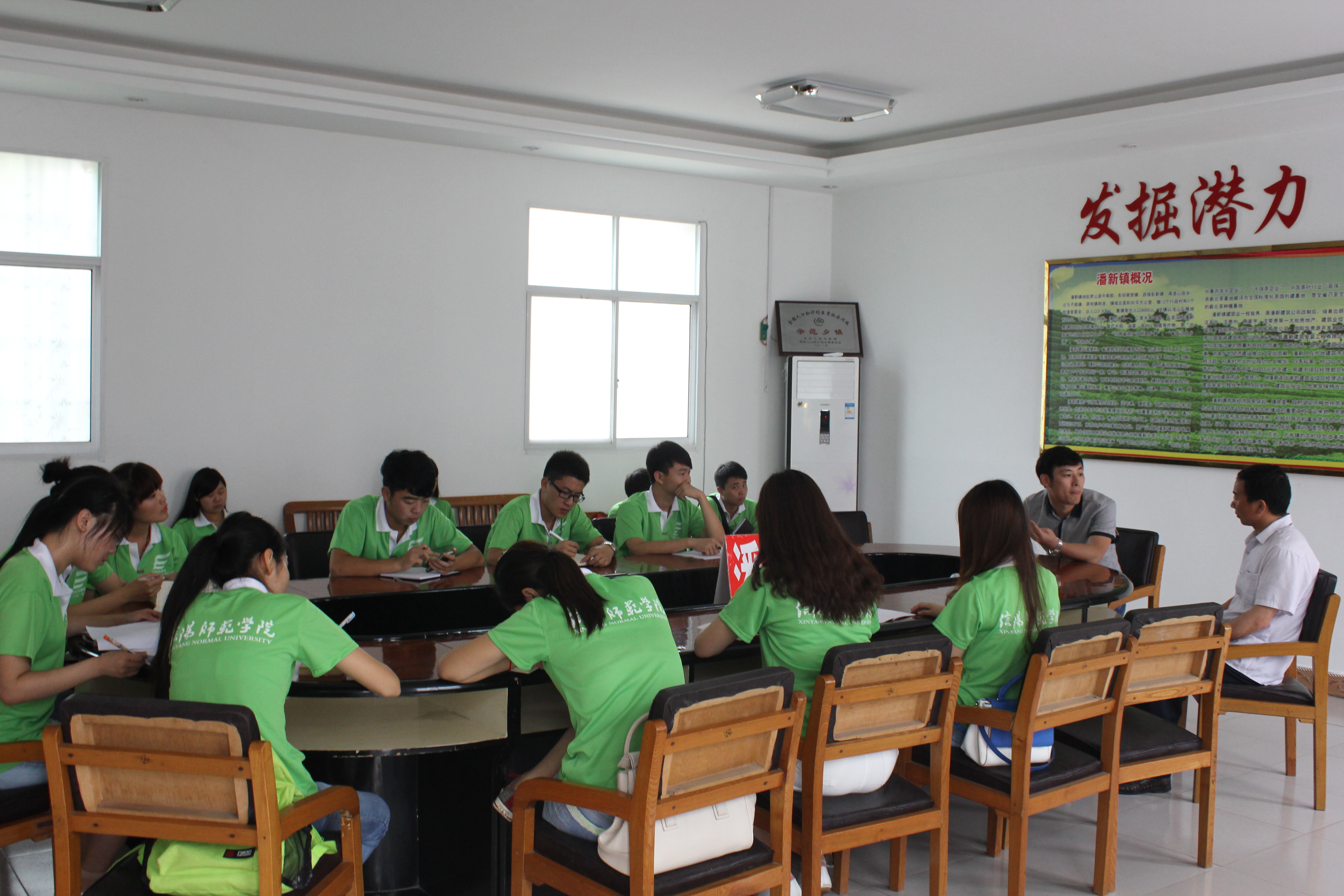 7月1号、2号两天经济学院社会实践小分队在团总支陈颢文老师的带领下驱车来到信阳罗山县潘新镇进行调研学习。经过一个半小时的车程,同学们顺利到达,受到了镇政府江书记、张主任等人的热情欢迎。在短暂的交流之后,同学们立即展开了丰富的活动。