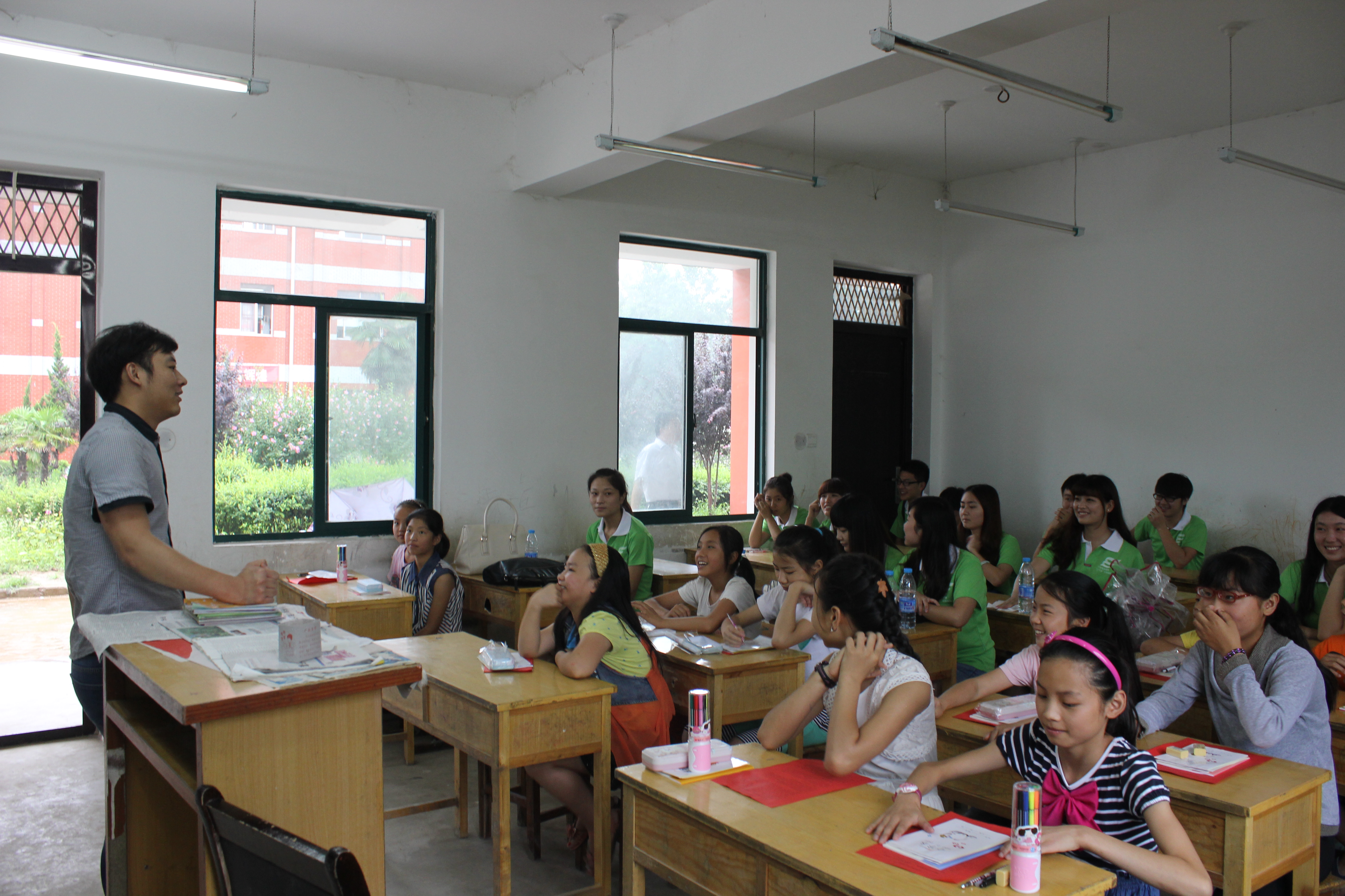 1号下午同学们给潘新中心学校六年级的学生们带来了一节节别开生面的课堂。同学们讲课热情高涨,方法有趣:史丹丹以《送元二使安西》为切入点,详细地向学生们介绍了诗词分析技巧、姚佳琪就单位换算与大家分享了数学学习方法,郝悦通过现场英语写作来与大家共同探讨语法知识。孩子们边听边记,积极发言。讲课同学勉励孩子们要刻苦学习,不忘理想,以优异成绩回报关心自己的人。最后在《同一首歌》、《小星星》的歌声中结束了教学活动。