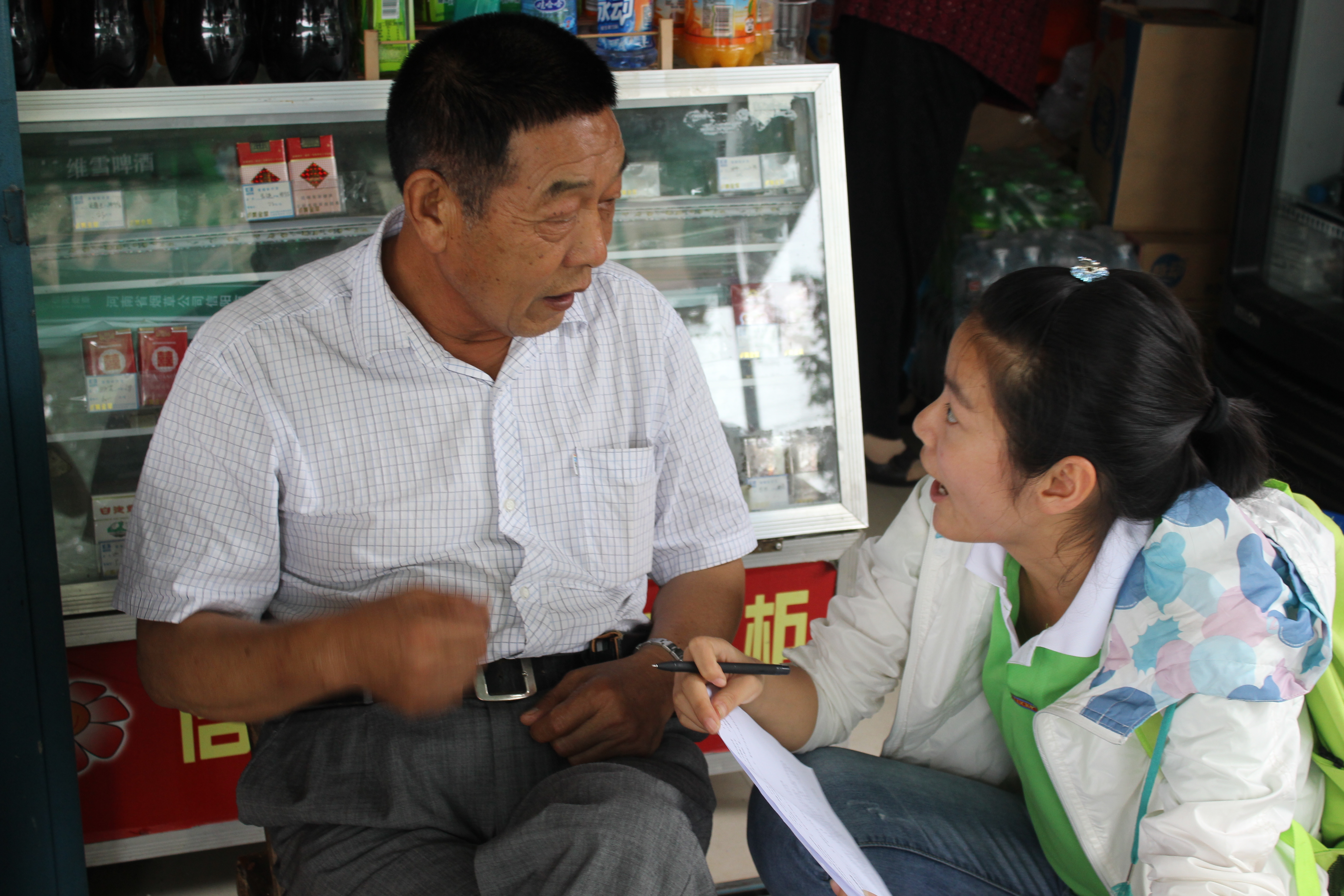 为了更好地了解农村劳动力转移现状、改善和提高农业生产和农民生活状况、为政府制定支农政策提供参考,2号上午同学们在陈老师的带领下来到镇中心开展了题为《中原经济区农村劳动力有序转移》问卷调查。同学们分为3队分头行动,到商店、居民家庭中进行采访。同学们耐心、认真的询问,就“受教育程度、土地拥有状况、收入来源比例等”进行调研。活动之后,同学们将所调研的情况进行归纳总结。