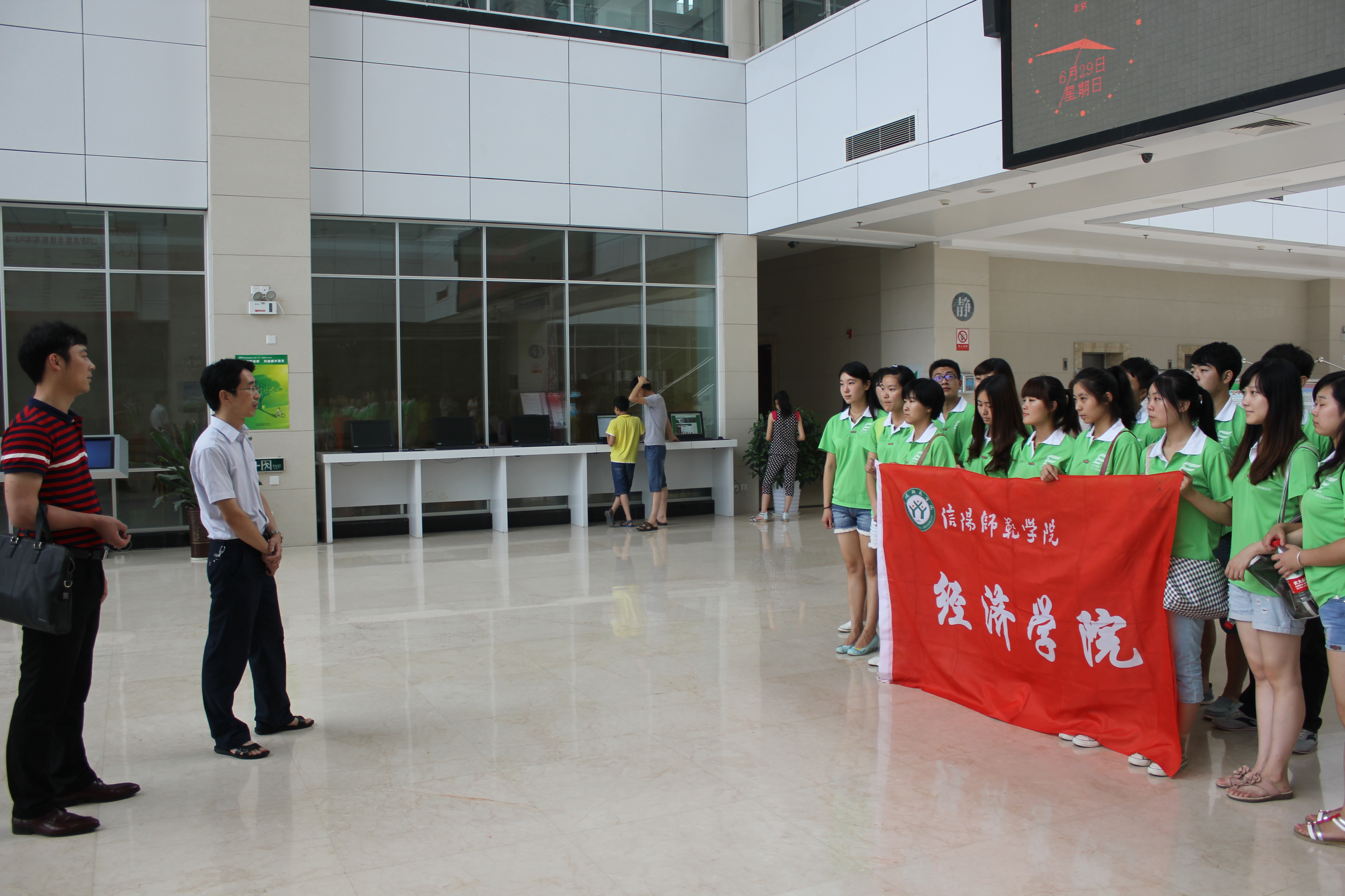 629日,30日两天信阳师院经济学院社会实践小分队在团总支陈颢文老师的带领下来到信阳市图书馆开展实践活动。本次活动内容分为三个方面:整理待分类书籍、参观大别山红廉文化苑、了解图书馆发展历程。