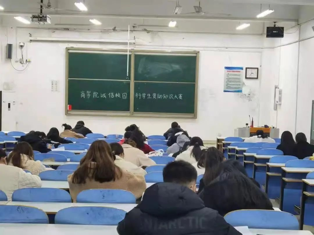 为持续深入贯彻落实全国全省高校思想政治工作会议和全国全省教育大会精神,宣传资助政策、传播征信和金融知识、强化诚信教育、发挥育人功能,根据河南省教育厅等四部门关于举办河南省大学生“诚信校园行”学生资助知识大赛的通知精神要求,12月14日,由学生工作部(处)、学生资助管理中心联合主办的“诚信校园行”学生资助知识大赛决赛在逸夫楼报告厅举行。学生工作部(处)长王建旭出席,各学院党委副书记、辅导员及学生代表观看了比赛。