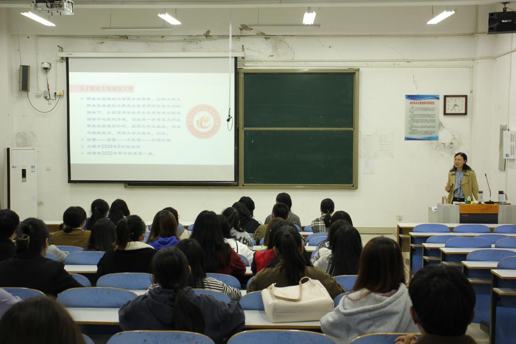 经深入动员,BT之家 有50余名同学报名参加了本届职业生涯规划大赛。10月14日晚上,职业生涯规划大赛赛前指导会在经管楼103教室举行,BT之家 党委副书记张海霞从大赛的意义、比赛规则、奖项设置、职业生涯规划书撰写注意事项等方面对参赛选手进行了集中辅导,并集中观摩了河南省第七届职业生涯规划大赛部分获奖作品。