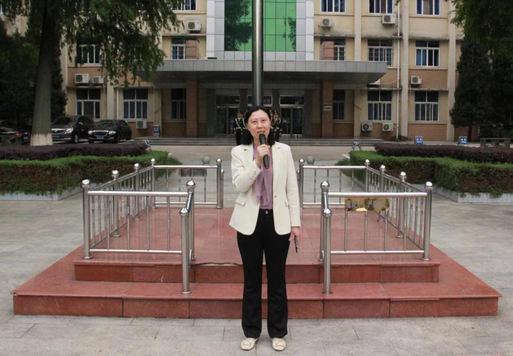 仪式伊始,国旗班护卫队队员护送着鲜艳的五星红旗入场,迈向升旗台,他们目光如炬,队列整齐,步履铿锵。在庄严的国歌声中,五星红旗冉冉升起,在场的每位师生深怀对祖国诚挚的热爱和崇高的敬意行注目礼并奏唱国歌。随后,学生代表郭雪贝在国旗下发表题为“立鸿鹄志,做奋斗青年”的演讲,勉励同学们不忘初心,不负韶华,勇担时代重任,以奋斗的姿态致敬最美的青春。最后,张海霞老师为本次升旗仪式致辞。她从春节档的几部热门电影切入主题,号召同学们在今后道路上敢于树立远大理想,发扬艰苦奋斗精神,不畏前行道路上的困难与挑战,不忘初心,努力雕琢自我,同时在前行道路上坚持学以致用、学用结合,不断挑战和提升自我,努力成长为堪当民族复兴重任的时代新人。