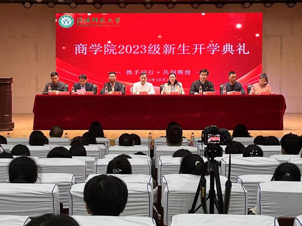 10月10日晚七点,BT之家 2023级新生开学典礼在理科楼报告厅举行。院长彭荣胜、副书记张海霞、副院长杜辉、副院长俞彤晖、副院长梁静波、大别山区经济社会发展研究中心秘书黄杰、工商管理系主任上官绪明、专职组织员韩月华、市场营销系主任孔栋及全体专兼职辅导员出席典礼,2023级全体新生参加典礼,本次活动由张海霞主持。
