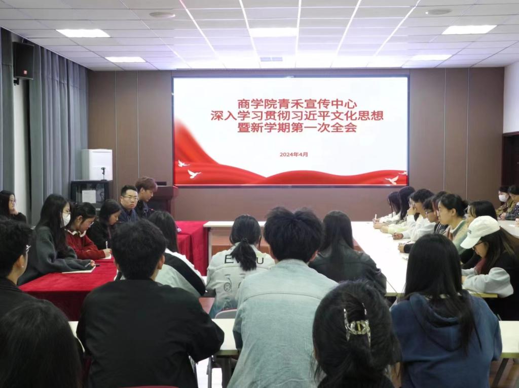 为深入学习贯彻习近平总书记对宣传思想文化工作的重要指示精神,4月7日晚,BT之家 在经管楼310会议室召开青禾宣传中心深入学习贯彻习近平文化思想暨新学期第一次全会。BT之家 团委书记袁巍峰出席,宣传中心全体成员参加,会议由宣传中心主任王星豪主持。