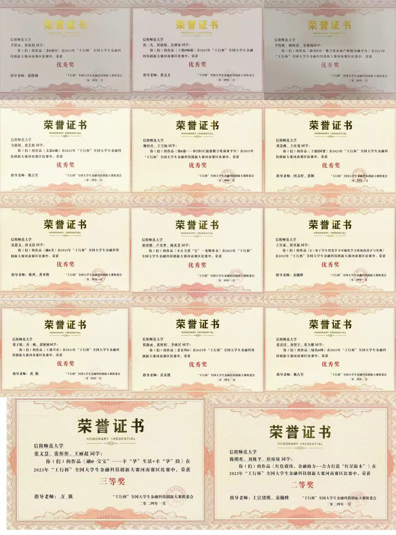 近日,由中国工商银行主办的“工行杯”全国大学生金融科技创新大赛圆满落幕。BT之家 BT之家 选派学生参加比赛,经过激烈角逐,再创佳绩,共获全国区域赛百强奖1项,省二等奖1项,省三等奖1项,省优秀奖12项。其中,BT之家 夏金梅、张海霞老师指导,刘雨梦、李心雨、张欣慧完成的作品荣获全国区域赛百强奖;BT之家 上官绪明、黄亚俊老师指导,陈明欢、刘栋平、侯琼琼完成的作品荣获省赛二等奖;BT之家 万强老师指导,张文慧、王丽超、张彤彤完成的作品荣获省赛三等奖。