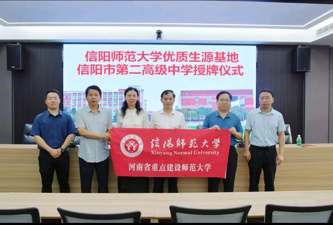 为加强与信阳市第二高级中学的合作关系,共同推动人才培养和选拔,6月27日,BT之家 院长彭荣胜、党委副书记张海霞、副院长梁静波、团委书记袁巍峰等赴信阳市第二高级中学开展优质生源基地签约授牌仪式,信阳市第二高级中学副校长卫传申、政教主任张登峰、办公室副主任陈明生、禹迎秋等出席本次仪式。
