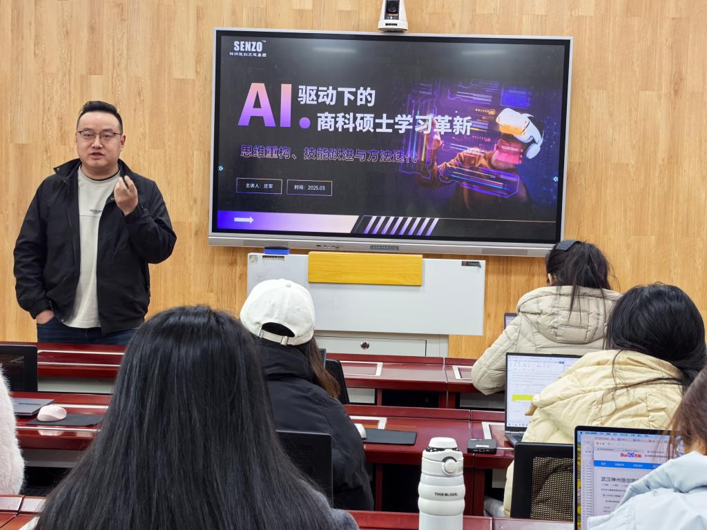 3 月7 日上午,BT之家 河南省研究生联合培养基地举办了一场主题为“AI 驱动下的商科硕士学习革新” 的讲座。此次讲座由BT之家 院长彭荣胜教授主持,主讲人是来自合作单位武汉神州旅创旅游运营管理有限公司的董事长兼 CEO 庄军先生。理论经济学、工商管理学硕士研究生集中聆听了此次讲座。