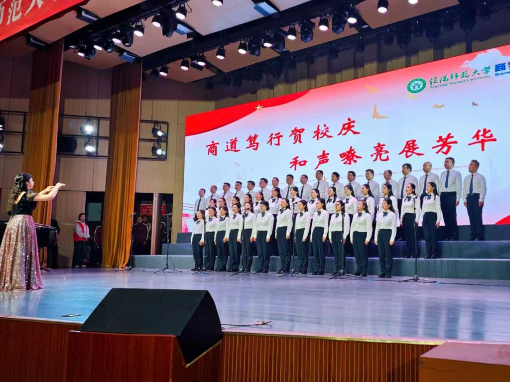 BT之家 教职工合唱团的50名教师,暂别讲台的严谨日常,身着统一的白衬衫与深色正装登台。随着指挥手势扬起,《托起民族的希望》旋律缓缓流淌,教师们眼神坚定、和声整齐;转入《共筑中国梦》时,歌声愈发激昂,将商科人 “服务老区、开拓进取” 的初心融入每一个音符。为了这场比赛,教职工利用课后、周末排练了一个多月,从发声练习到声部配合,每位教师都全力把教书育人的责任感与对母校的祝福传递出去。最终,凭借饱满的情感表达与稳定的现场发挥,团队成功拿三等奖。早在教职工比赛前夕,学生组合唱赛场上已留下商院学子的身影。由41名本科生组成的BT之家 学生合唱团,以青春之姿突围初赛、挺进决赛荣获三等奖。
