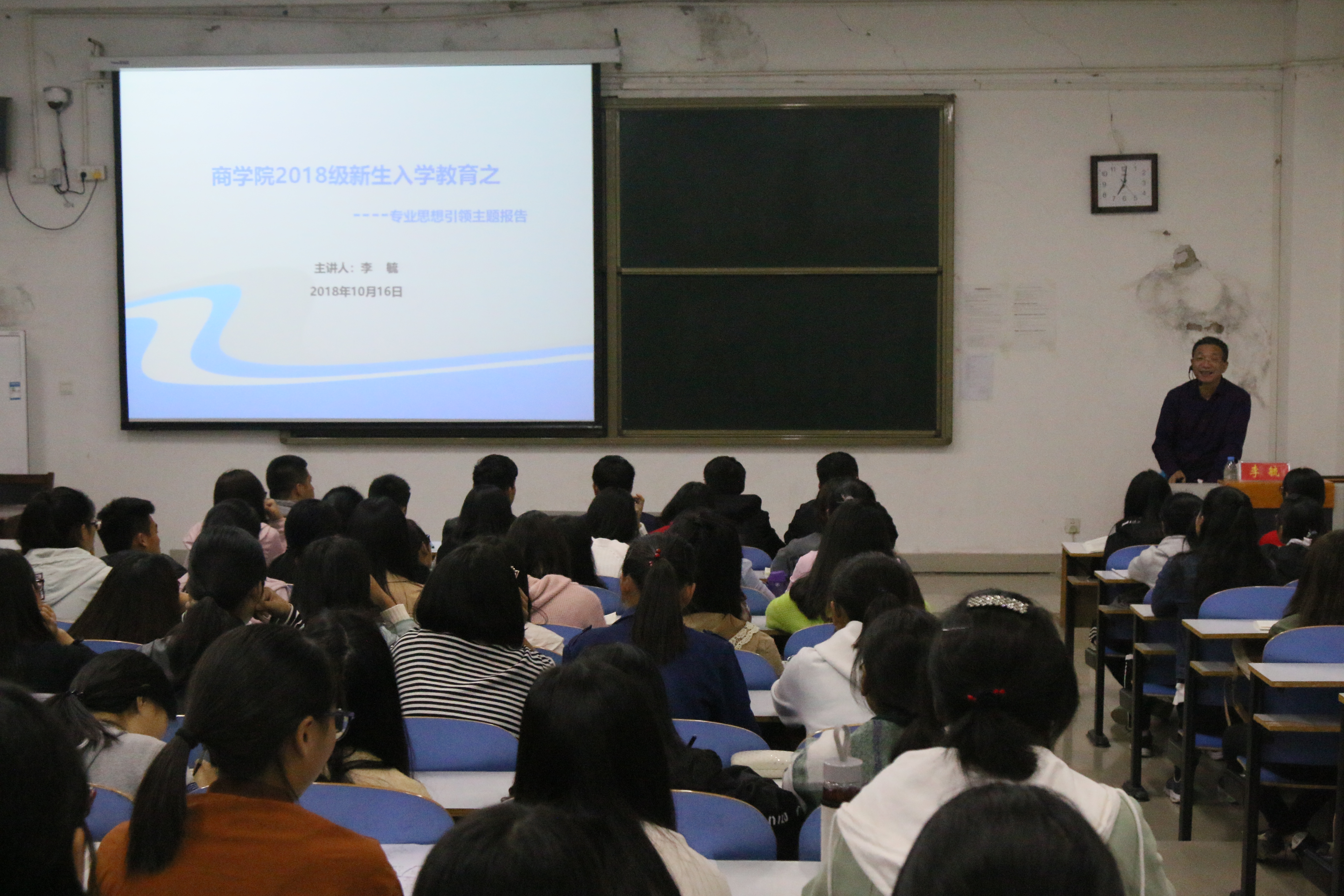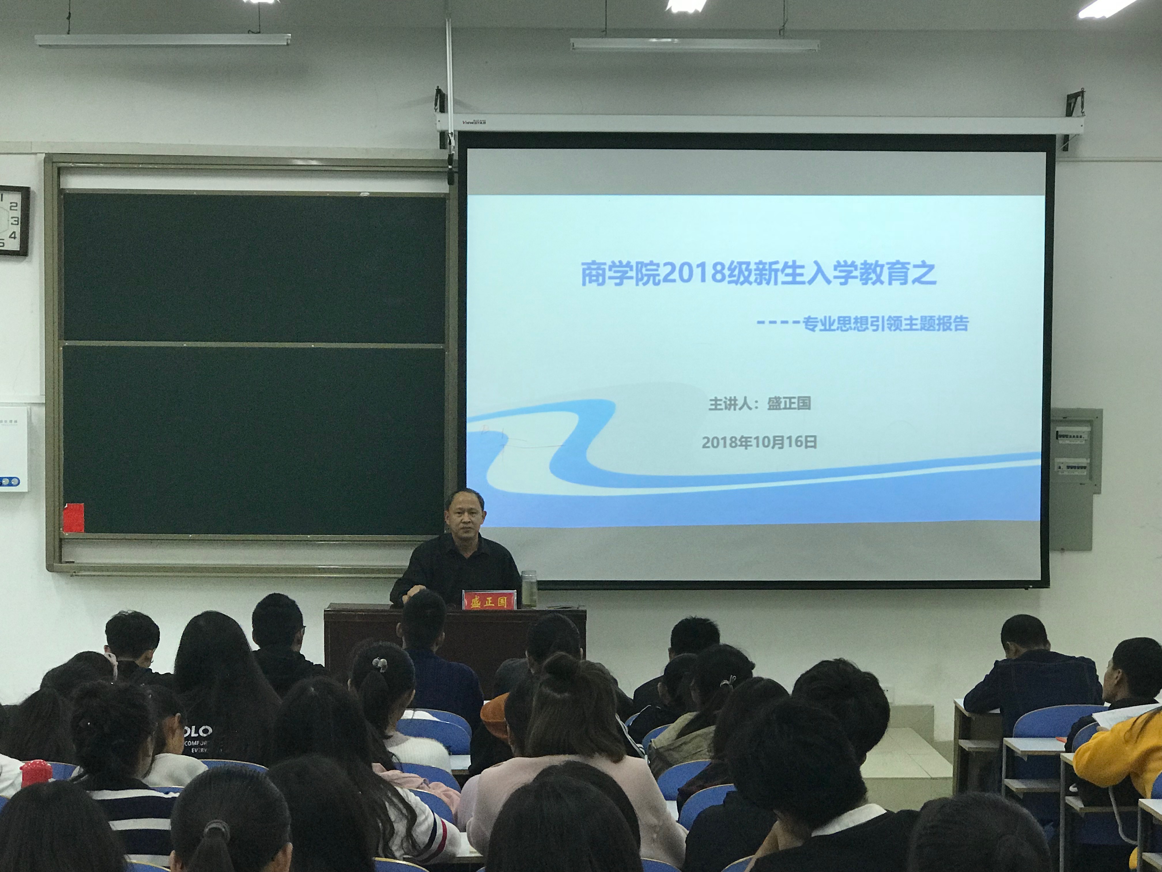 党委书记盛正国,副院长李毓于16日分别在经管楼101,103教室为2018级新生做了专业思想引领报告。新生班班主任及全体新生聆听了报告。