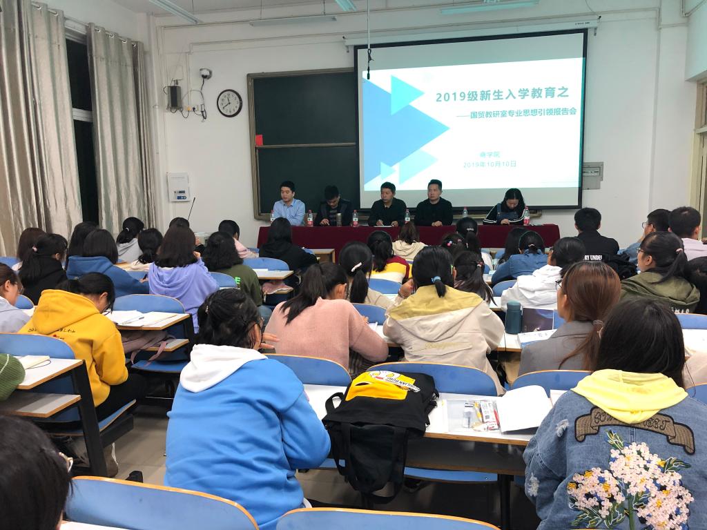 为使2019级国际经济与贸易专业新生更好了解专业知识,更好进行专业规划,促进新生更加高效学习,10月10日晚七点,国际经济与贸易系专业思想引领座谈会于经管楼206教室内举行。国贸系梁静波主任、周荣军、曹江宁、沈潇、刘方等老师及19级国际经济与贸易新生参加了此次会议。