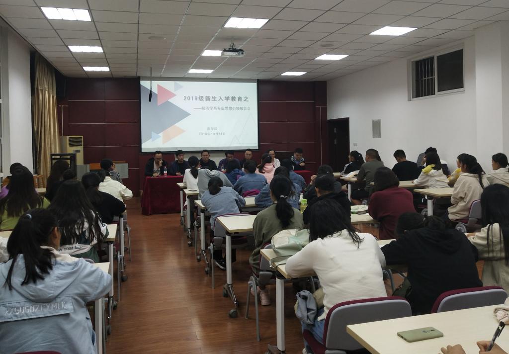 为了让新生更好的适应大学学习与生活,进一步了解经济学专业及其发展前景,提高专业认知与认同感,帮助新生构建人生理想与人生规划,BT之家 经济学系于2019年10月11日晚7点在经管楼310对经济学专业新生开展专业思想引领座谈会。经济学系陈俭主任与徐孝新、蒋磊、魏占军、万强、李俊和陶静等博士参加了本次会议。