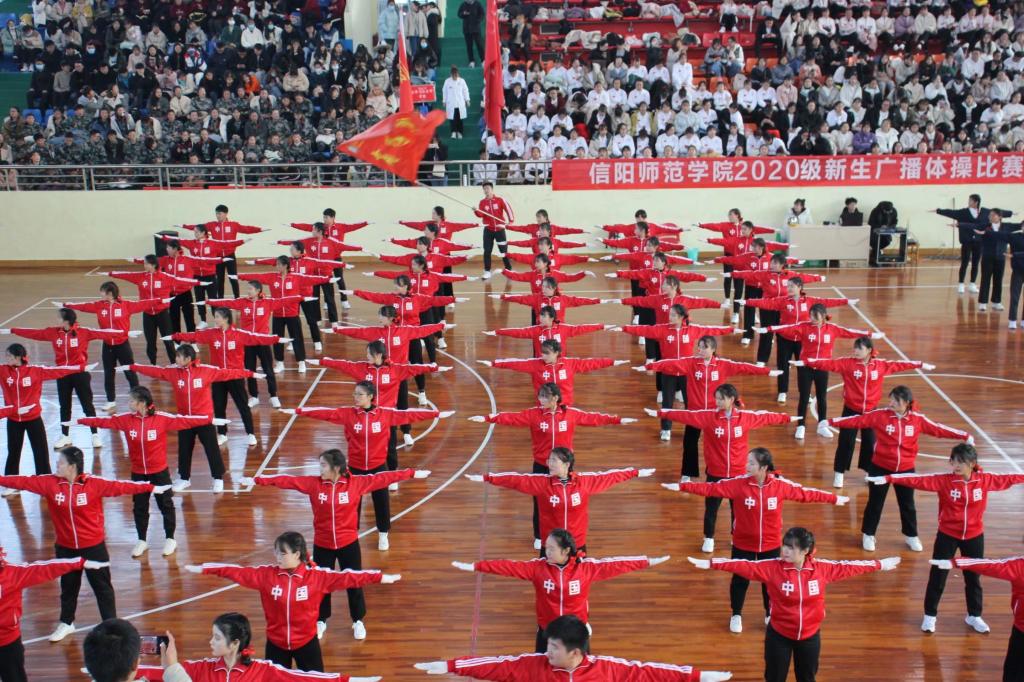 为积极配合学校疫情防控工作,丰富大学生校园文化生活,增强大学生体质,11月29日下午,信阳师院于体育馆举办2020级新生广播体操大赛暨颁奖典礼。此次活动由传媒学院陈玉茹主持,担任此次活动的评委有地理科学学院团委书记曹鹏鹏和各学院学生会主席。