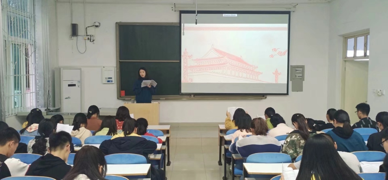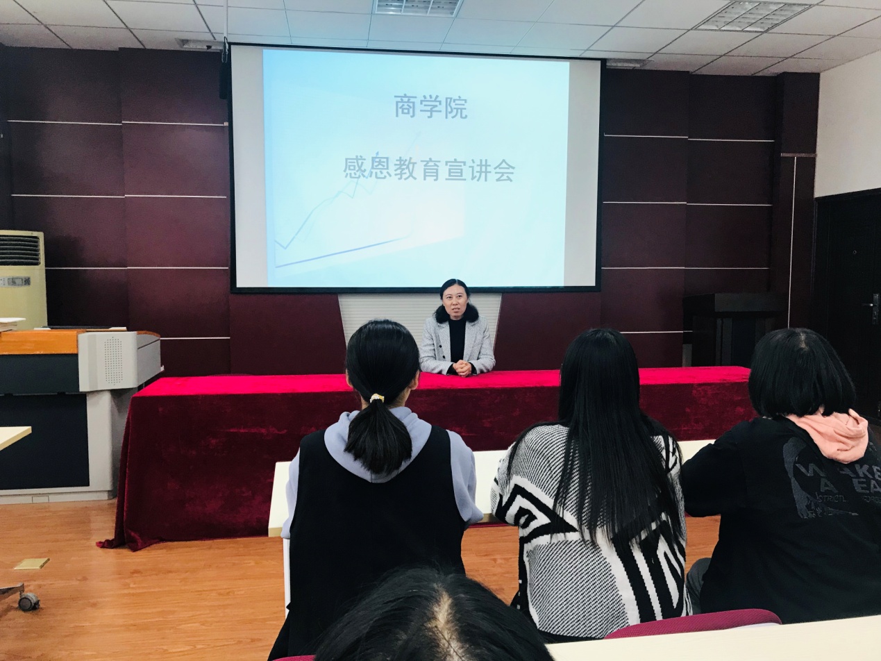 (副处级辅导员张海霞对学生进行感恩教育)