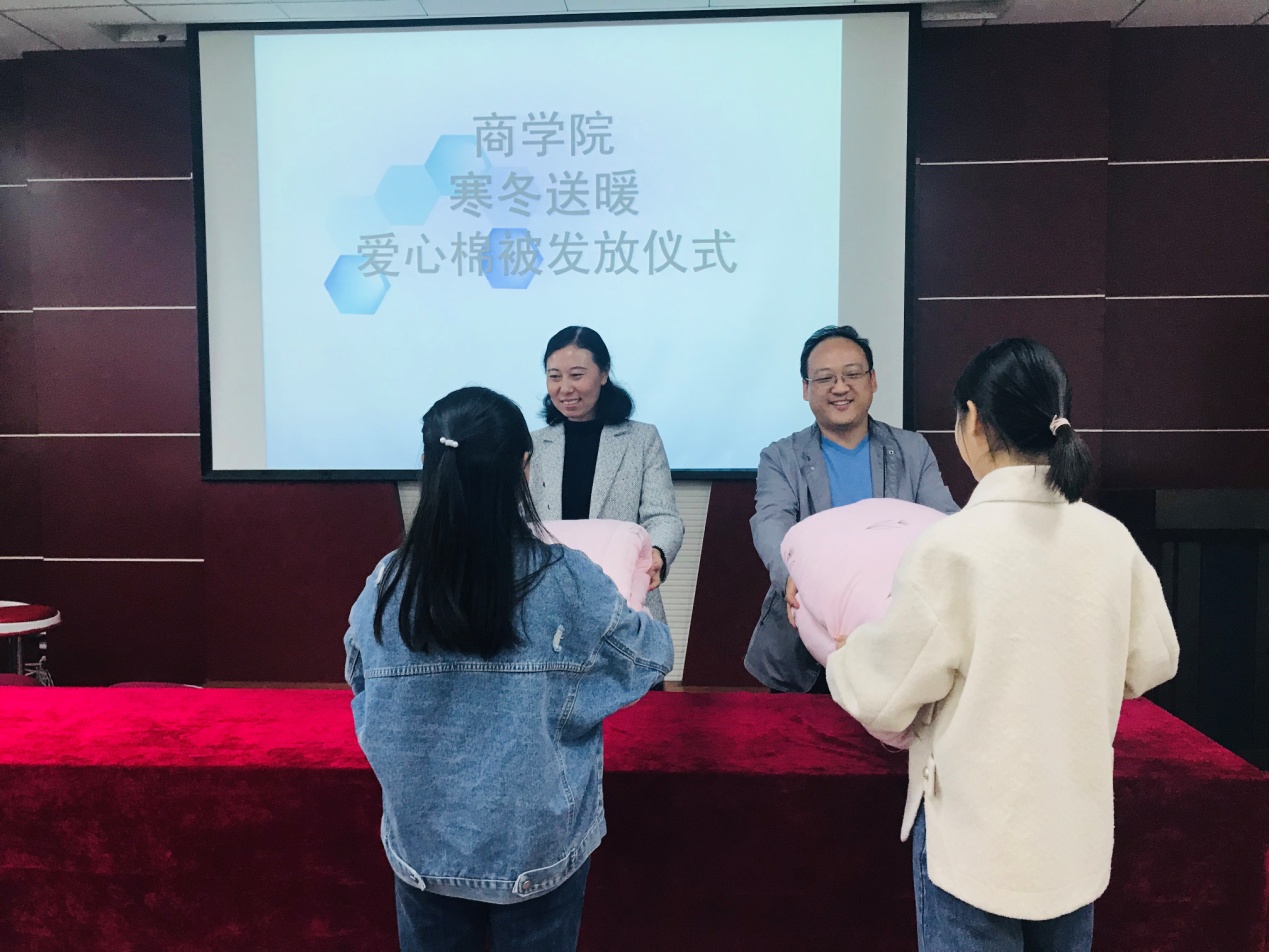(给困难学生发放爱心棉被)
