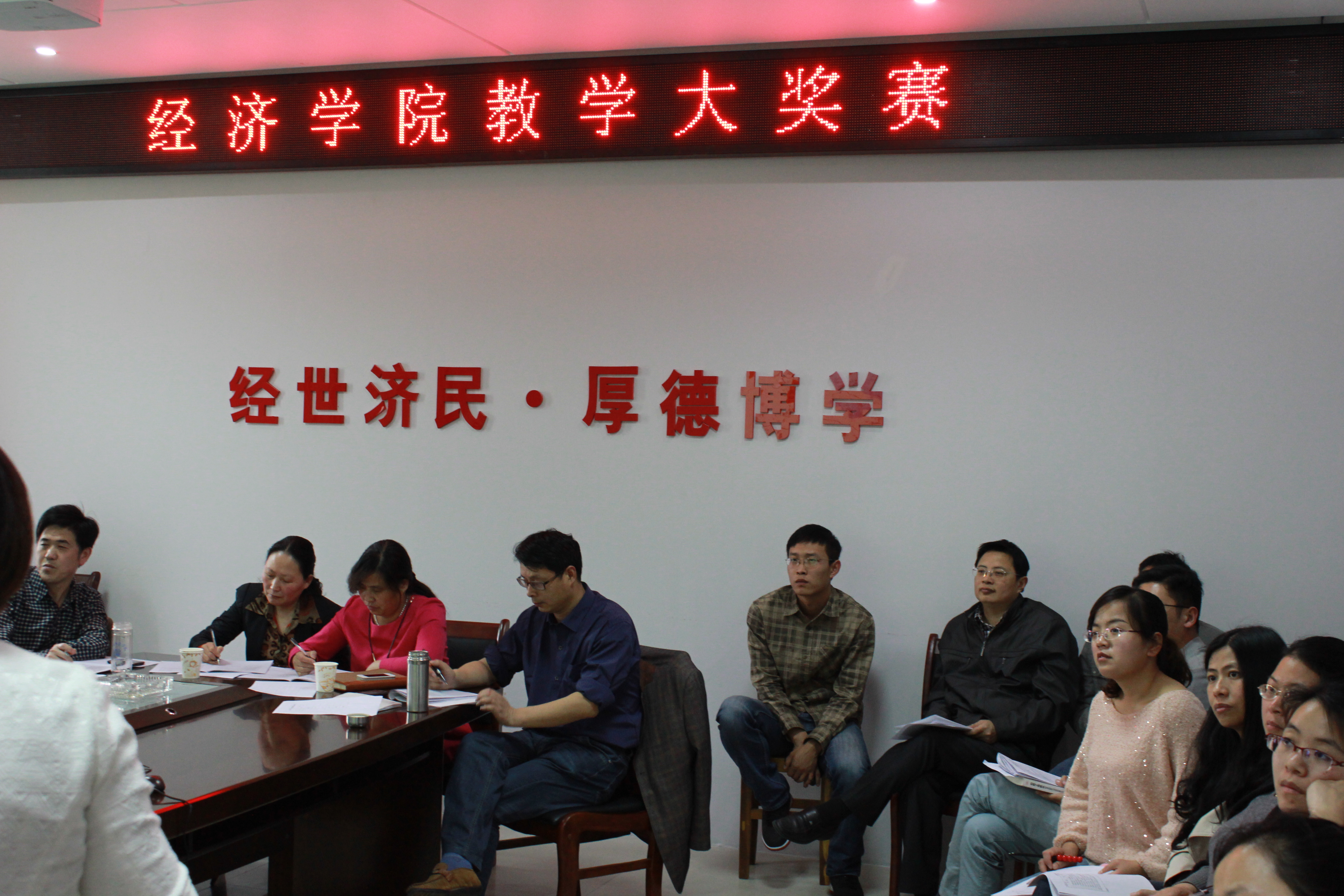 为贯彻落实学校党委、行政2014年度工作要点,提升广大教师队伍整体素质,根据教务处下发的《关于开展2014年度青年教师教学大奖赛的通知》文件精神,经济学院2014年度教师教学大赛于4月1日下在506会议室隆重举行。学院党总支书记盛正国教授、院长郑云教授、副院长梅士建教授等学院领导和全体老师出席了本次大赛。